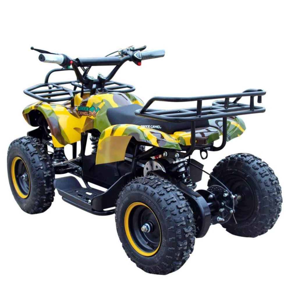 GreenCamel Gobi K200 Армейский желтый – это великолепный квадроцикл подходящий для детей в возрастном диапазоне от трёх до семи лет. Он способен выдержать вес до шестидесяти килограмм. Снабжён дисковыми механическими тормозами, которые установлены на все колёса. GreenCamel Gobi K200 также не страшен дождь – его электроника прекрасно защищена от попадания в неё влаги. Экологически чистый электромтор безопасный для природы и вашего ребёнка, способен разгонять квадроцикл до скорости в 20 км/ч. Подзарядив батарею на сто процентов (потребуется примерно восемь часов) ваш ребёнок сможет проехать на квадроцикле до двадцати километров.