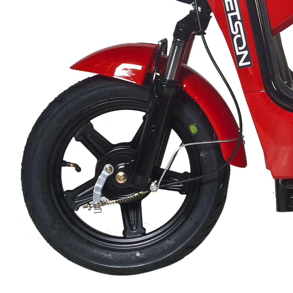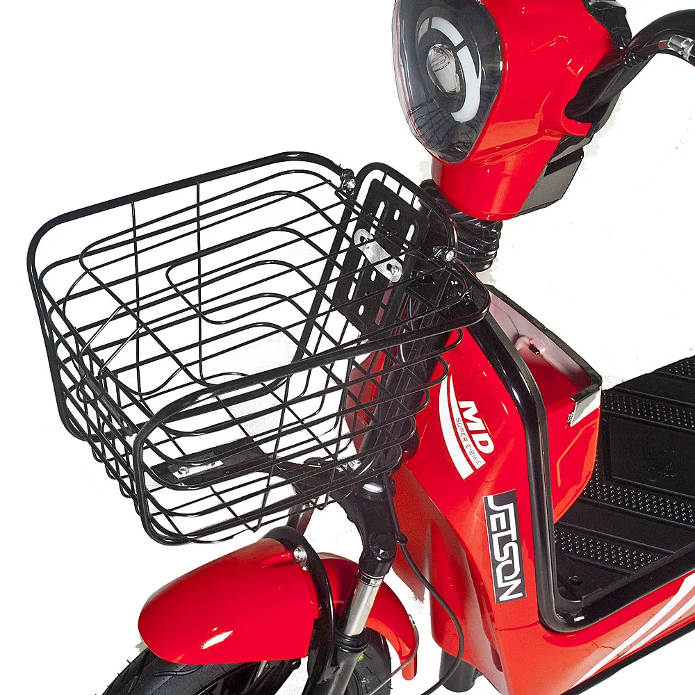 Аккумулятор быстросъёмный и имеет защиты от перезарядки, что делает его зарядку значительно проще. Заряжается он ни много, ни мало – 4 часа, что на самом деле довольно быстро для батарею такой ёмкости. 14-дюймовые колёса и регулируемая подвеска придадут больший комфорт при движении по любым поверхностям. Практичные барабанные тормоза электроскутера Jetson RS-12 делают его остановку максимально плавной. В тёмное время суток перемещение на скутере безопасно благодаря мощной LED-лампе спереди и габаритному огню сзади. В комплекте к электроскутеру идут корзинка для удобной перевозки малогабаритных вещей и сидение с прямой спинкой для комфортной посадки второго пассажира. Также на скутер с завода установлена сигнализация.