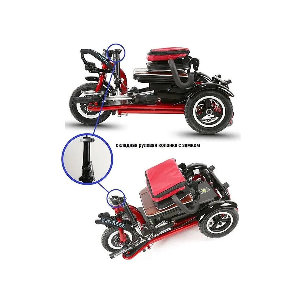 Покупка трицикла мощностью 350 Вт позволит развивать скорость до 25 км/час, преодолевать на одной подзарядке 40 км пути. Наличие жестких амортизаторов при езде сглаживает движение при преодолении препятствий, кочек. 10 дюймовые колеса обеспечивают устойчивость, увеличивают степень безопасности. Электротрицикл изготовлен из облегченного алюминия, представлен складной конструкцией. При необходимости может приобретать минималистичные удобные для транспортировки размеры. Функционал – максимальный. Техника оснащена передней светодиодной фарой, звуковым сигналом, информационным дисплеем, контролирующим скоростные показатели, пробег и заряд батареи. Для оформления заказа выгодно предлагаем сделать телефонный звонок менеджеру интернет-магазина.