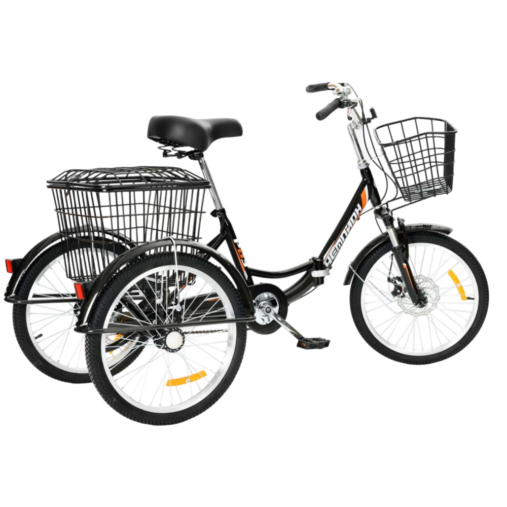 Подходит для прогулок, поездок на дачу/рынок, перевозки покупок (корзины до 50 кг сзади); для взрослых 50+ лет или новичков без подготовки. Складной механизм удобен для метро/авто; трёхколёсная база идеальна для пожилых или с ограниченными возможностями (стабильность); привлекает дачников/садоводов.